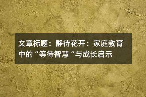 "教育不是雕刻,而是唤醒;不是填满水桶,而是点燃火焰。当我们学会等待,时间会成为最好的教育者;当我们选择帮助而非控制,生命自会绽放应有的光彩。"