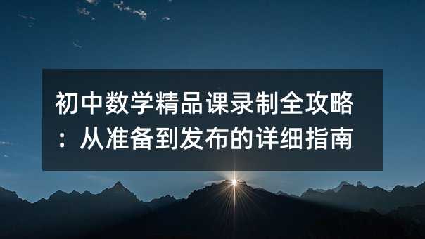 亲爱的家长们和同学们,你们是不是经常在寻找高质量的初中数学课程,却发现市面上的课程要么枯燥乏味,要么难以理解?其实,你完全可以考虑自己动手,录制一堂既有趣又实用的初中数学精品课!别担心,今天我就来手把手教你,如何轻松上手,录出高质量的课程,让你成为自己学习路上的“小老师”。